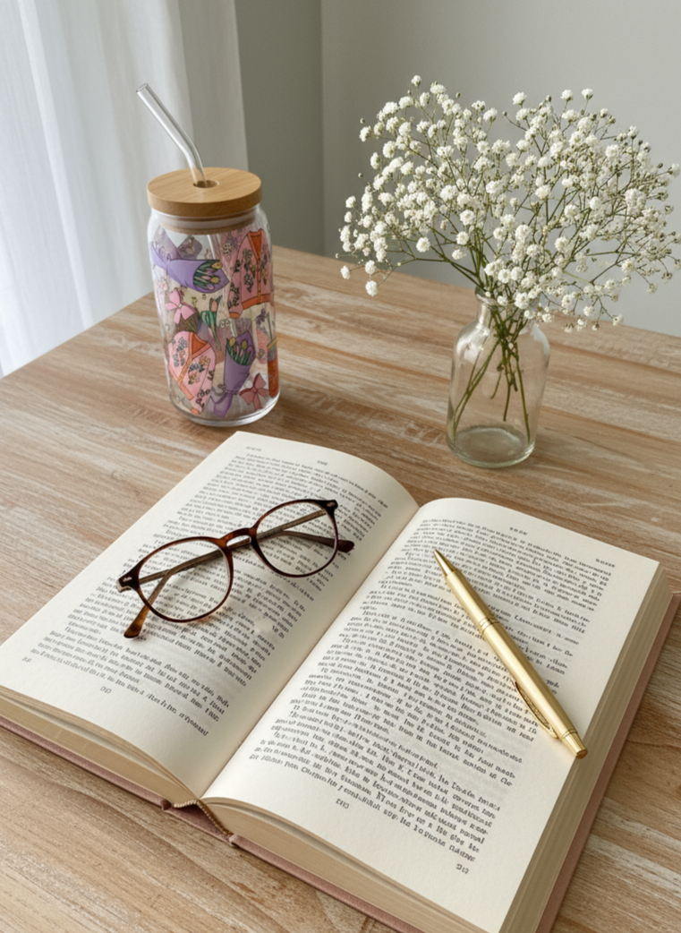 Wrap your favorite drink in cozy vibes with this 16oz “Sweater Season” glass cup, featuring a warm, autumn-inspired design of embroidered cardigans, floral mugs, ribbons, and gentle pastels. Each cup is printed using permanent IV DTF technology, ensuring the artwork stays vibrant and smooth — no peeling or fading, even with daily use.